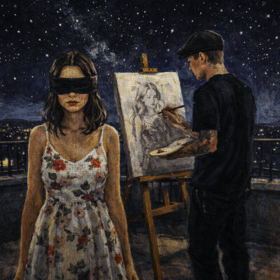 Романтическая ночь, наслаждение тишиной. Говорящий вырвал чистый лист бумаги и нарисовал портрет любимой, потому что красивее её нет. Она — его мечта с влюблёнными глазами. Стало грустно, не до сна. Хочется нарисовать свои чувства, чтобы она поняла. Яркие краски, оставлено место на холсте в надежде, что она нарисует то, что чувствует к нему. Повторяется первый куплет. Наступает момент признаний: она показывает холст со сплетением нежных очертаний, радостью и слезами. Ночью идёт дождь, он не мечтал об этом. Как в грустной песне, он нарисовал её. Финал повторяет припев и строку о мечте с влюблёнными глазами.